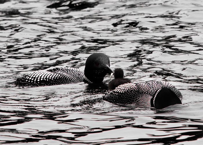 The Common Loon lives on quiet, remote freshwater lakes. In the winter, it is found on lakes, rivers, estuaries and coastlines. The Common Loon is an indicator of water quality because it needs clear water to see swimming fish beneath the surface. The Common Loon breeds in New Hampshire.