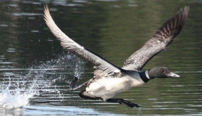 Like airplanes, loons need a runway to take off! The Common Loon needs from 30 yards to a quarter-mile to gain enough speed for lift-off. Because of this requirement, sometimes during migration loons become stranded if they land on a pond too small for take-off. |