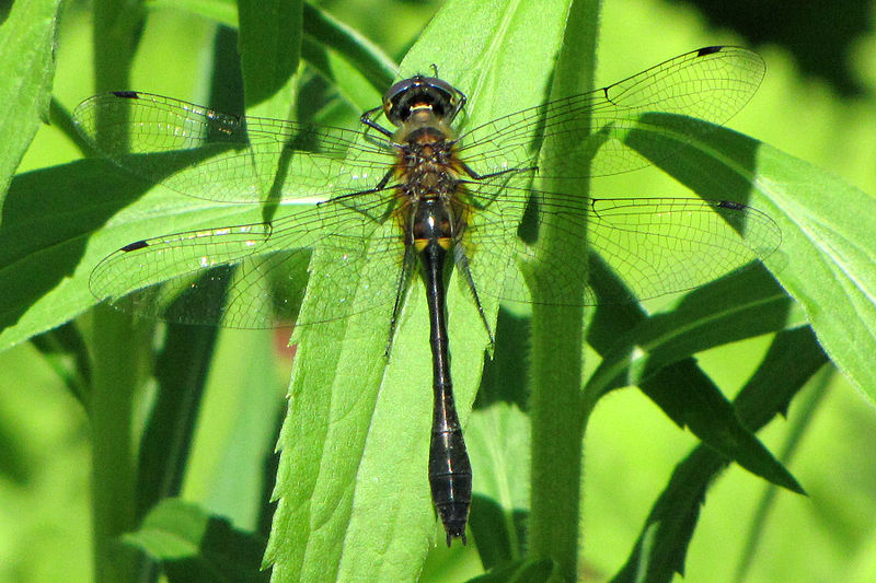 The spiny baskettail is found near ponds, slow streams, and marshy lakes and seems to like slow moving acidic water.