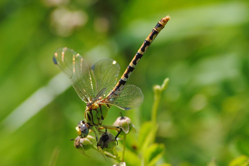 Clubtail's get their name from the bulge that many species have at the end of their abdomen that makes the abdomen look a little like a club. The bulge is usually larger in males.