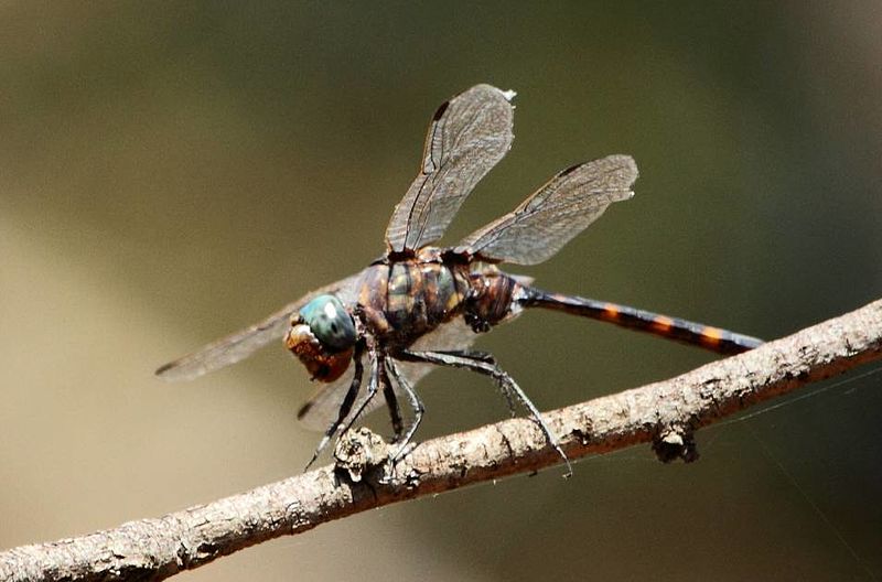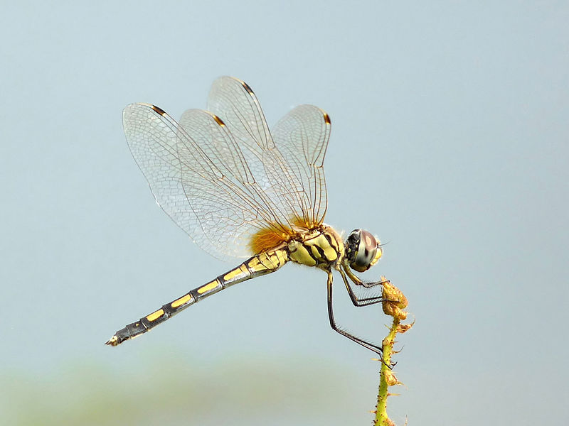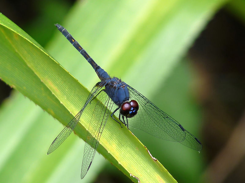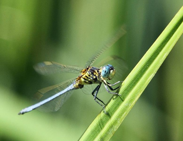 The blue dasher is found near ponds, lakes, marshes, ditches, and slow streams.