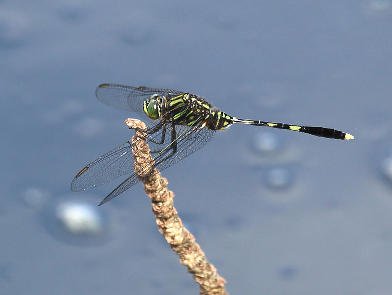 The pin-tailed pondhawk is found near marshy swamps, pools, lakes and streams with moderate currents.