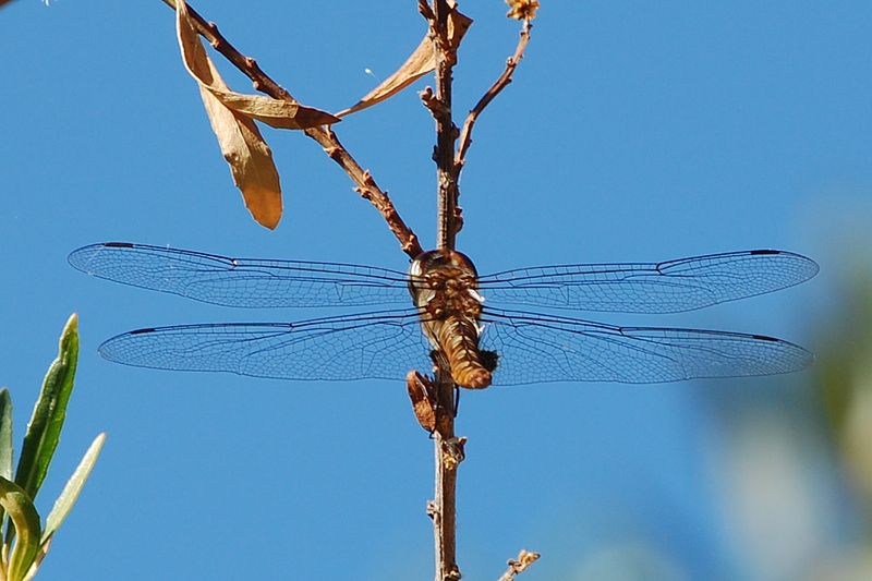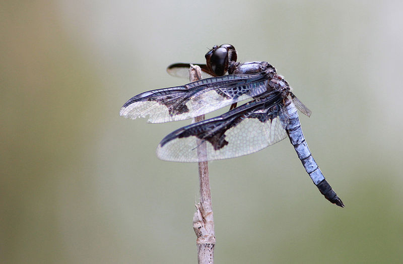 The twelve-spotted skimmer gets its name from the brown to black spots on its wings.