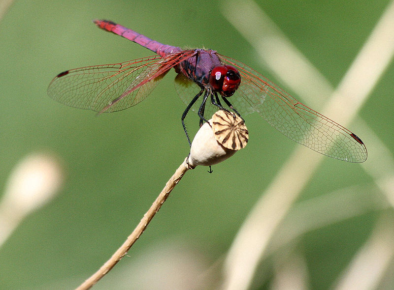 The carmine skimmer is found at temporary and permanent ponds, lakes, ditches, and slow streams.