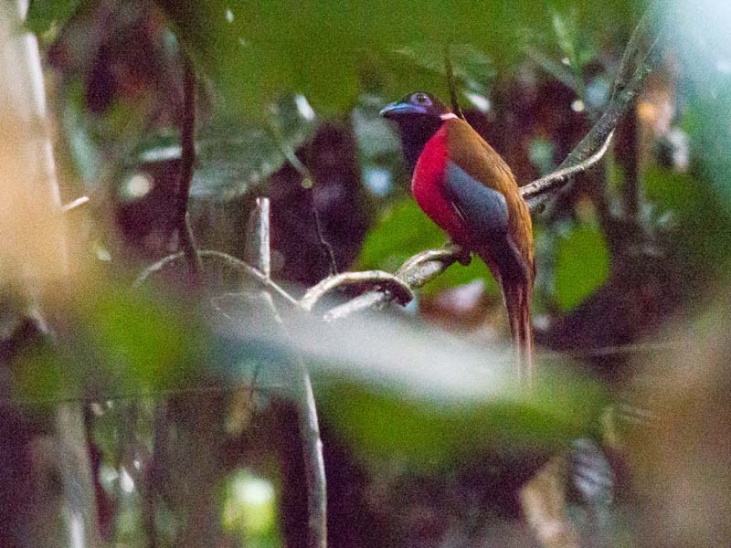 Whitehead's trogon is found in Indonesia and Malaysia.