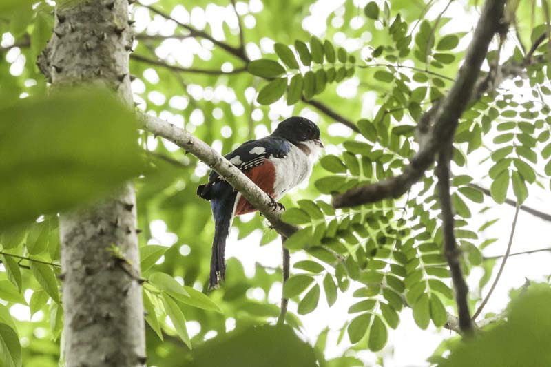 The slaty-tailed trogon is found in Belize, Colombia, Costa Rica, Ecuador, Guatemala, Honduras, Mexico, Nicaragua, and Panama.