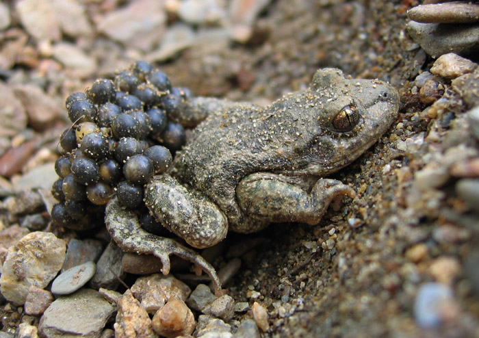 The Iberian midwife toad is found in Portugal and Spain. The female Iberian midwife toads can produce up to four clutches every breeding season.