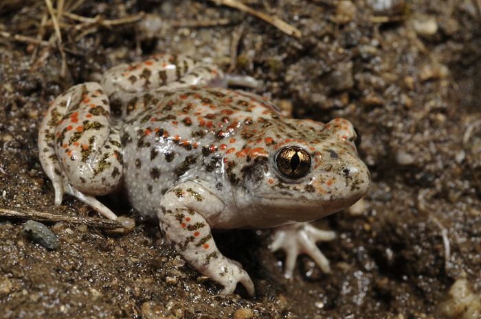 The Betic midwife toad is found in pine and oak forests and in open rocky areas in Spain.