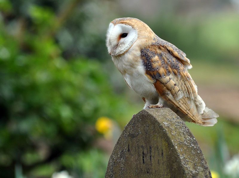 The female barn owl lays five to ten eggs at a rate of one egg every two to three days. She lays her eggs on bare wood or stone in buildings, tree hollows, caves, or burrows. The owlets hatch in 32-34 days, and both parents feed them. The owlets hunt on their own when they are about two months old. Because the barn owl has a life expectancy of only about two years, females often have two broods a year.