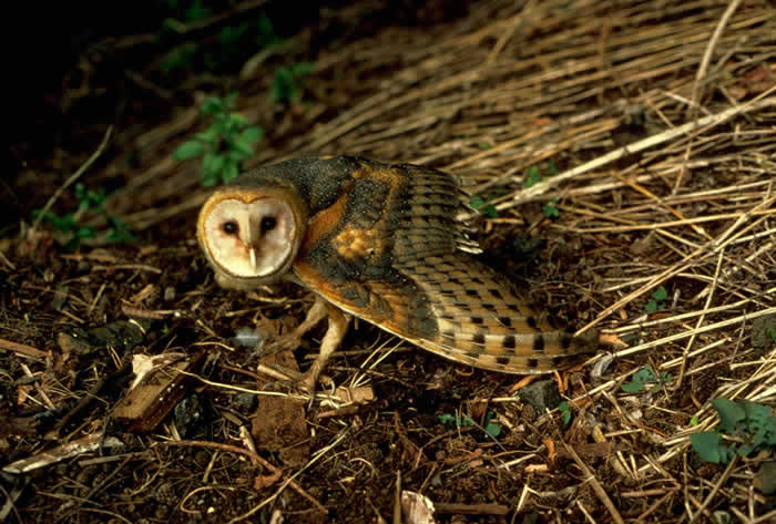 When a barn owl is threatened, it spreads its wings and sways its head back and forth. It may also fall on its back and strike out at the threat with its feet.
