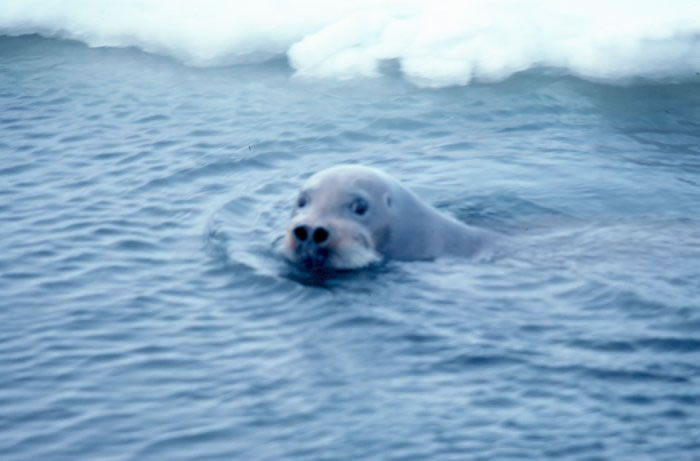 Except for the breeding season, the bearded seal is a solitary animal. In the spring, male bearded seals "sing" underwater songs that can be heard by humans on the surface! The song is probably used to attract a mate and establish territory. |