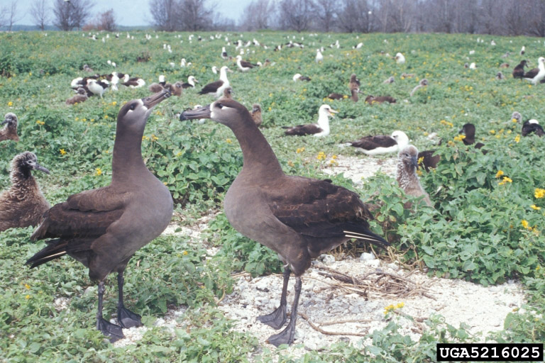 The black-footed albatross is found on open ocean waters and ocean islands.
