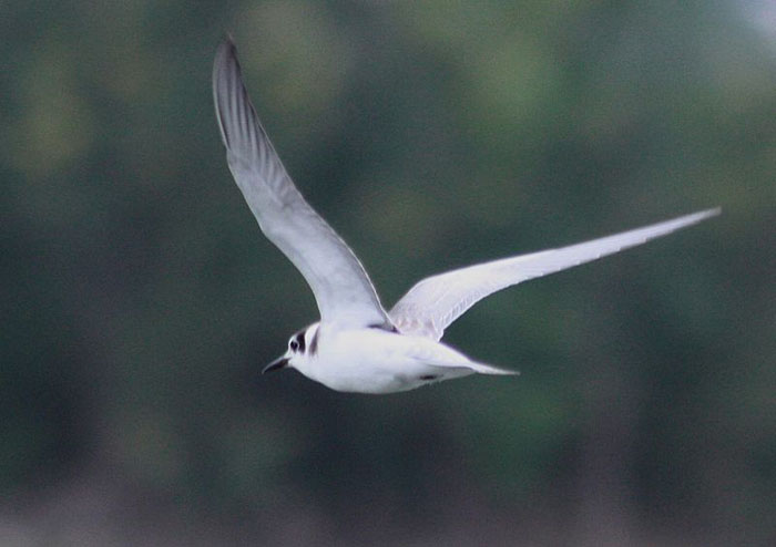 Black TernA small, dark bird between 9 and 10 inches, the black tern glides through the air on its long wings. It has a very sharp and slender bill which it uses to grab insects out of the water. The black tern has different coloring depending on the season. During summer breeding season, the black tern's head, chest and wings are dark gray. In the winter, its head and underside are white while the wings remain gray.
