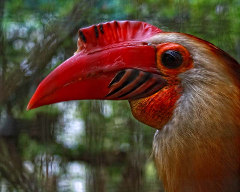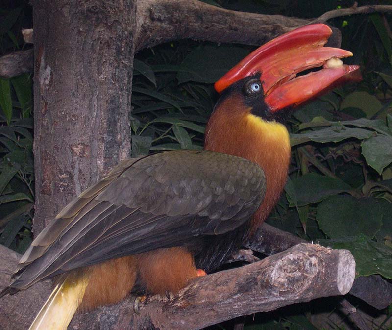 The rhinoceros hornbill has a honking squawk that sounds goose-like.