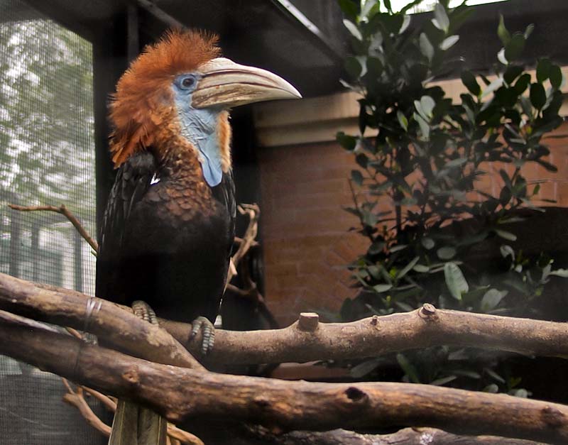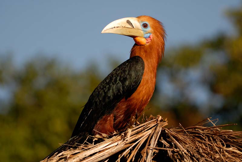 The rufous-necked hornbill gets its name from its rusty-red underparts, neck and head.