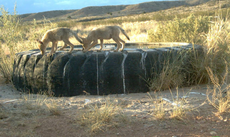 When hunting small prey like mice, the coyote stands still with its legs stiff and then pounces on its prey. When hunting larger prey like deer, coyotes hunt in packs. One or more coyote chases the deer while the others wait; then the next group will pick up the chase. Working in teams like this the coyote can tire the deer out, making it easier to kill. Coyotes also often follow badgers and catch animals that pop out of the burrow the badger is digging.