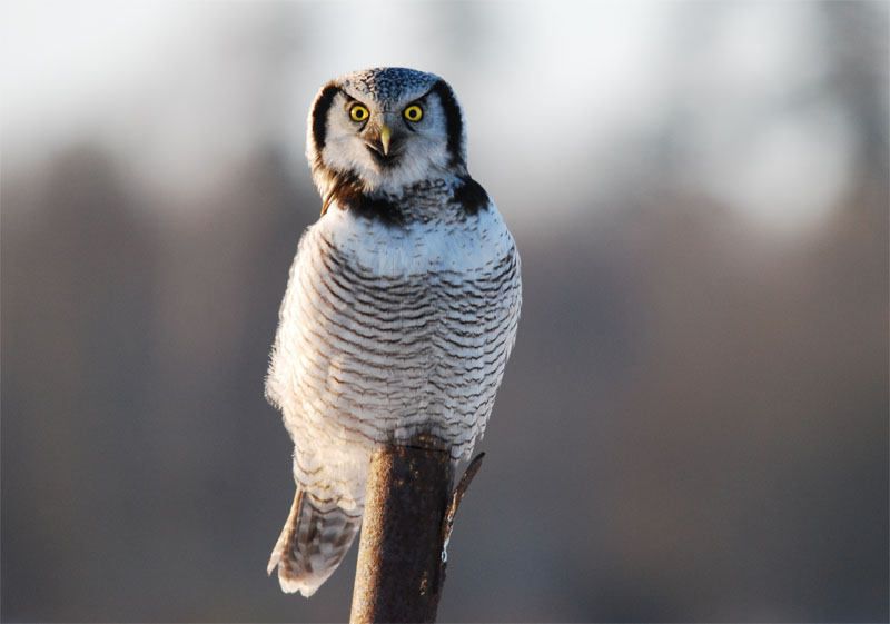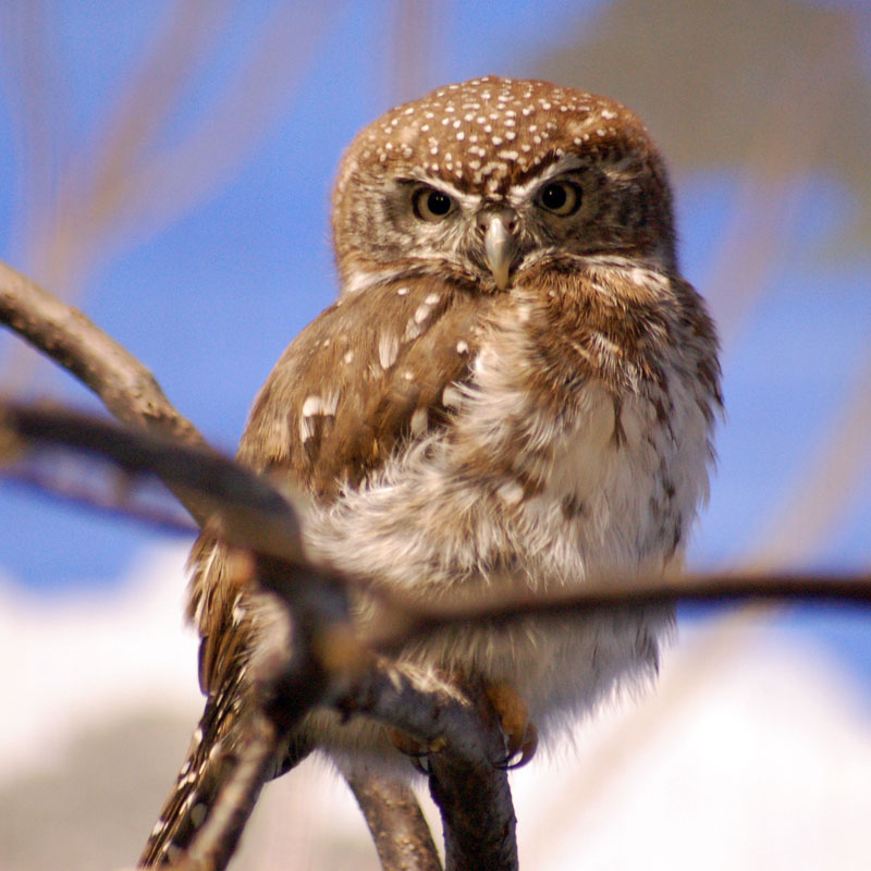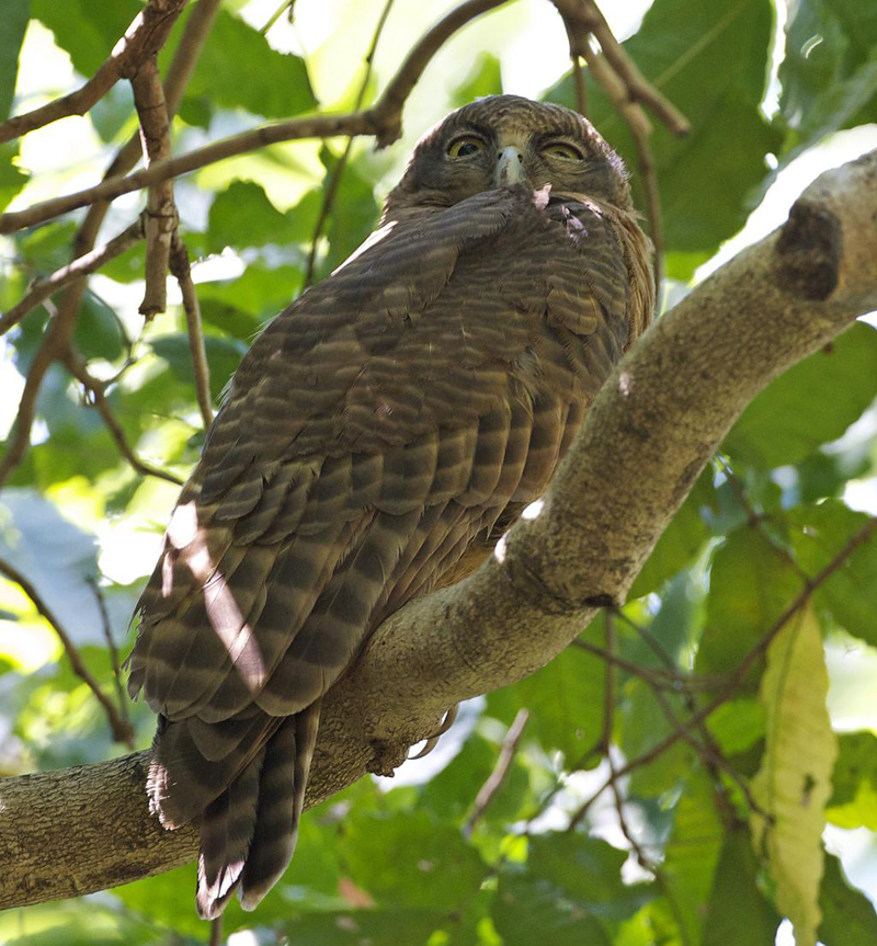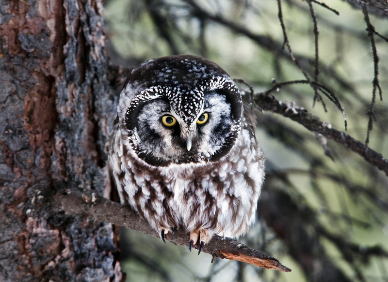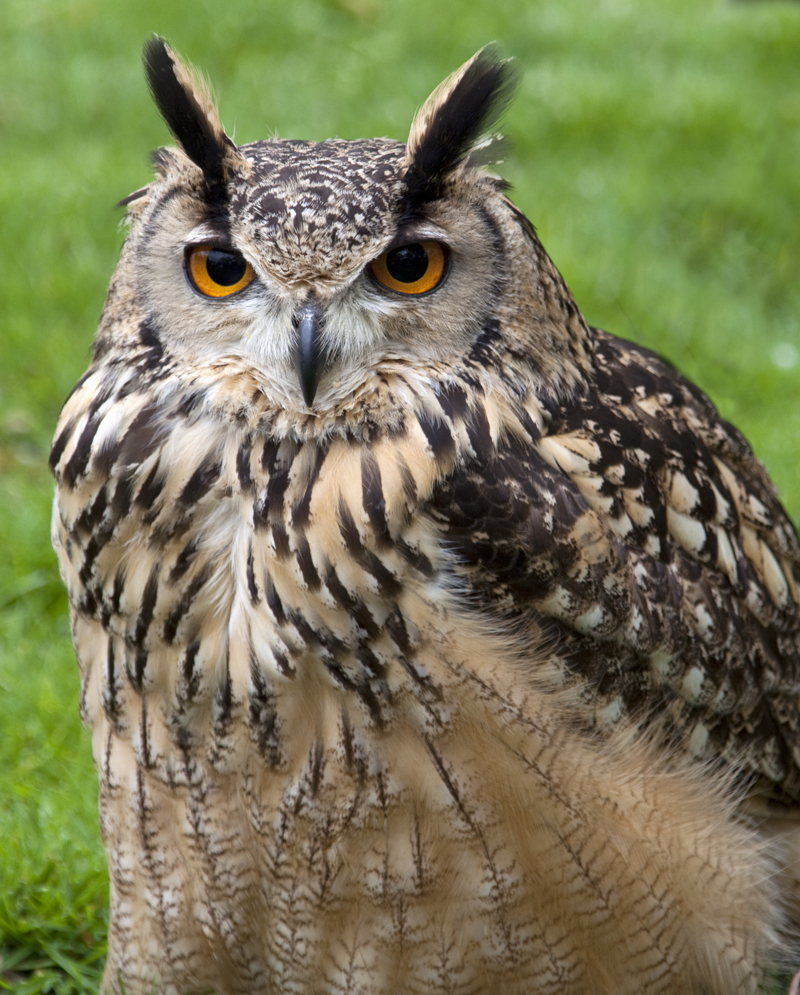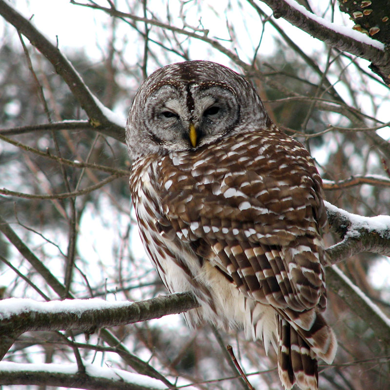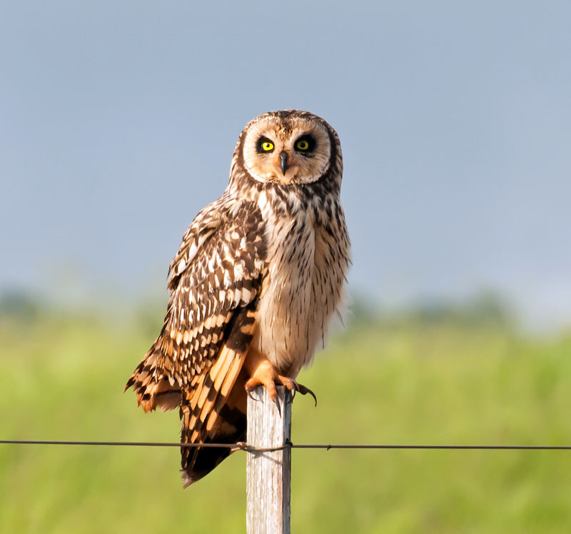 Owls have sharp, hooked bills; large, forward-facing eyes; big heads; round or heart-shaped faces; flexible necks; long bodies; sharp talons; and soft, thick feathers. |