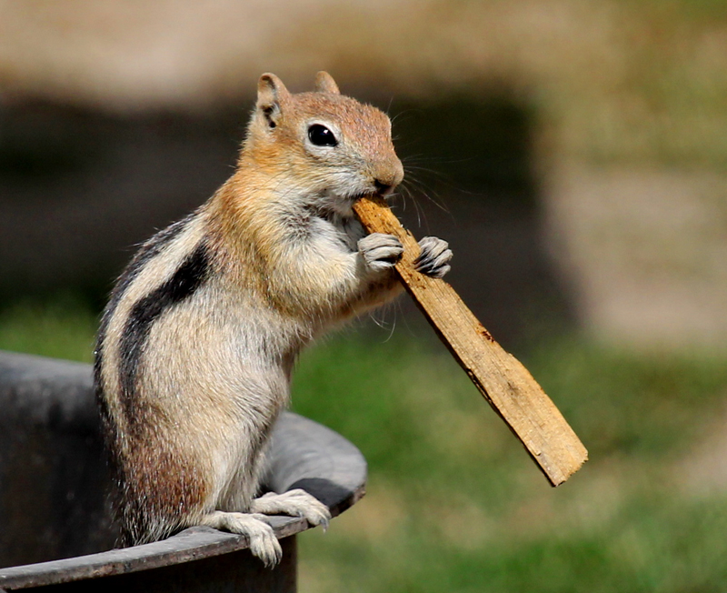 The golden-mantled ground squirrel cleans itself by rolling in the dirt and combing its fur with its teeth and claws.