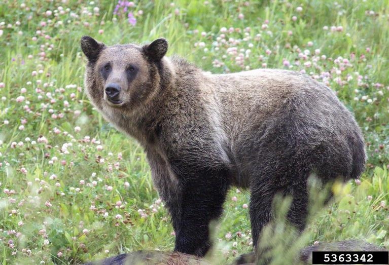 The brown bear is also known as the grizzly bear. Some brown bears have fur that is tipped in a lighter color than the rest of its fur. This gives the fur a grizzled look and is how the bear got the name grizzly bear.