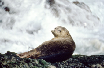The harbor seal will "haul-out" of the water and rest on rocks with its head raised and its rear flippers in the air in what is called the banana position. The harbor seal usually hauls out in the same area. The harbor seal can also sleep in the water. It takes a position known as bottling where all of its body, except for its head, is under water.