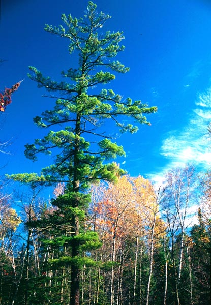 Logging has destroyed most of the original white pine forests, but the species is aggressive in reproducing itself and is found throughout its original range. The white pine is also grown on tree farms and plantations. The tree has a soft wood and is often used for pulp and to make furniture, crates, paneling, match sticks, and boats. White pine is also cultivated for Christmas trees.