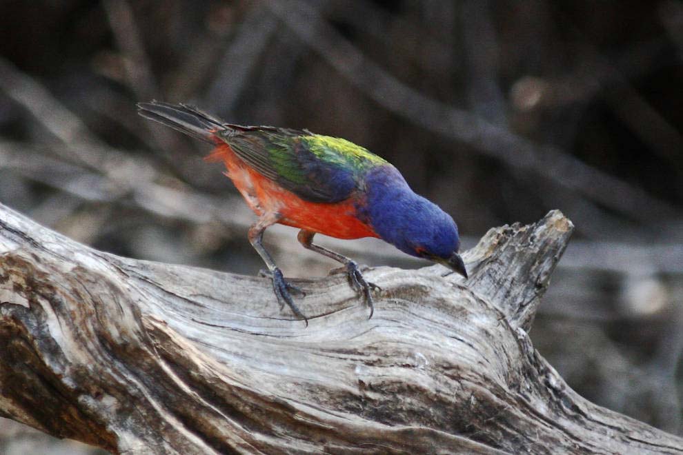 Though the painted bunting is colorful, it is difficult to spot because it is often under the cover of brush and thickets.