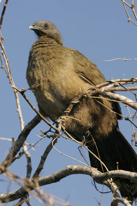 The plain chachalaca is found from southern Texas in the Rio Grande Valley south to Nicaragua and Costa Rica.