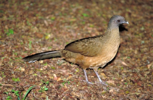 HabitatThe plain chachalaca lives in river woodlands and thickets. They prefer to live close to water. DietThe plain chachalaca eats leaves, grain, berries, buds, and sometimes insects. Life Cycle BehaviorThe plain chachalaca is a very noisy bird. At dawn and sunset, groups of them call loudly from the treetops. |