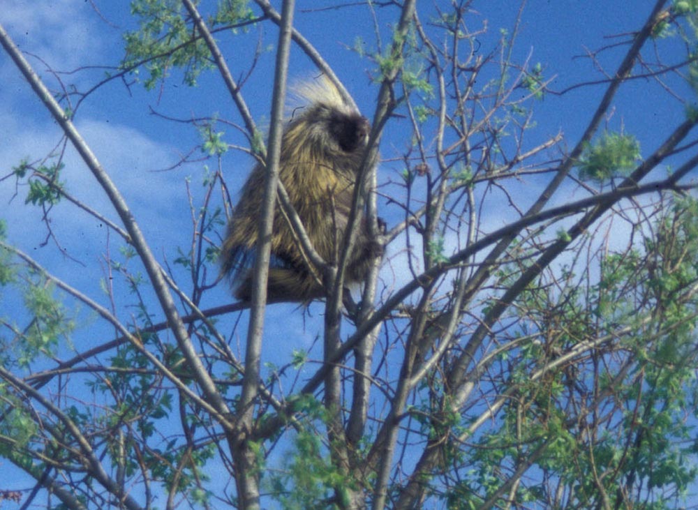 The North American porcupine lives in coniferous, deciduous, and mixed forests. In the west, it is found in scrubby areas.