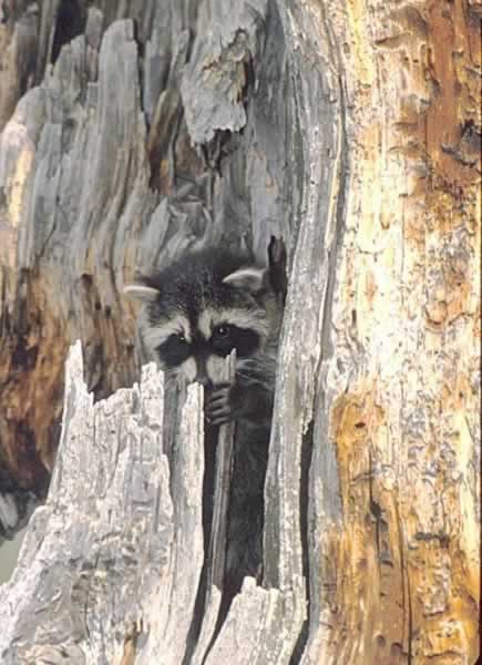 The name raccoon is from the Powhatan word aroughcun which means "he scratches with his hands." Captain John Smith was the first European to write about the raccoon in 1608. |