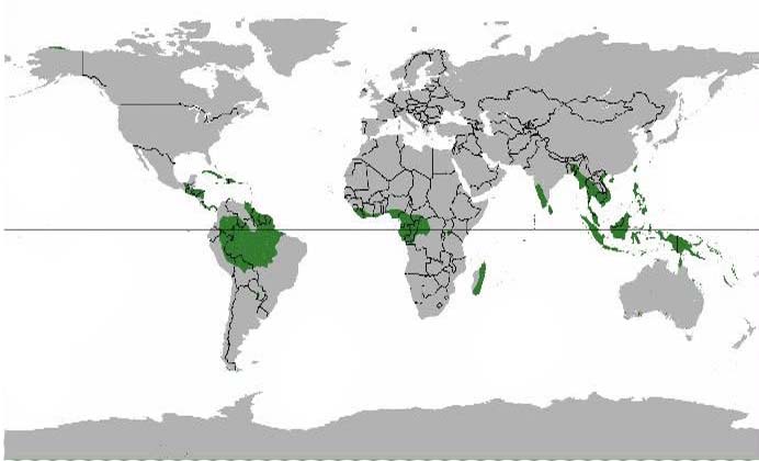 Tropical rainforests are found near the equator. It rains every day and tropical rainforests can get as much as 400 inches of rain each year. The seasons don't change; and the average temperature is about 80 degrees Fahrenheit. About half of the world's tropical rainforests are in Latin America. Other tropical rainforests are found in Asia, Africa, and the Pacific islands. |