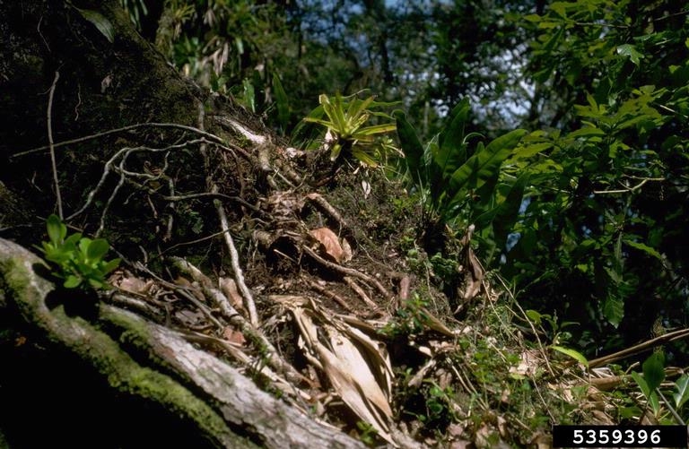 The rainforest is also home to epiphytes. Epiphytes don't grow in the soil. They grow on a host plant, usualy a tree, and get their nutrients from the moisture and dust in the air. Ferns, lichens, mosses, orchids, and bromeliads are all epiphytes. The tropical rainforest is also home to nepenthes or pitcher plants. These are plants that grow in the soil. They have leaves that form a cup where moisture gathers. Pitcher plants capture insects in these cups!
