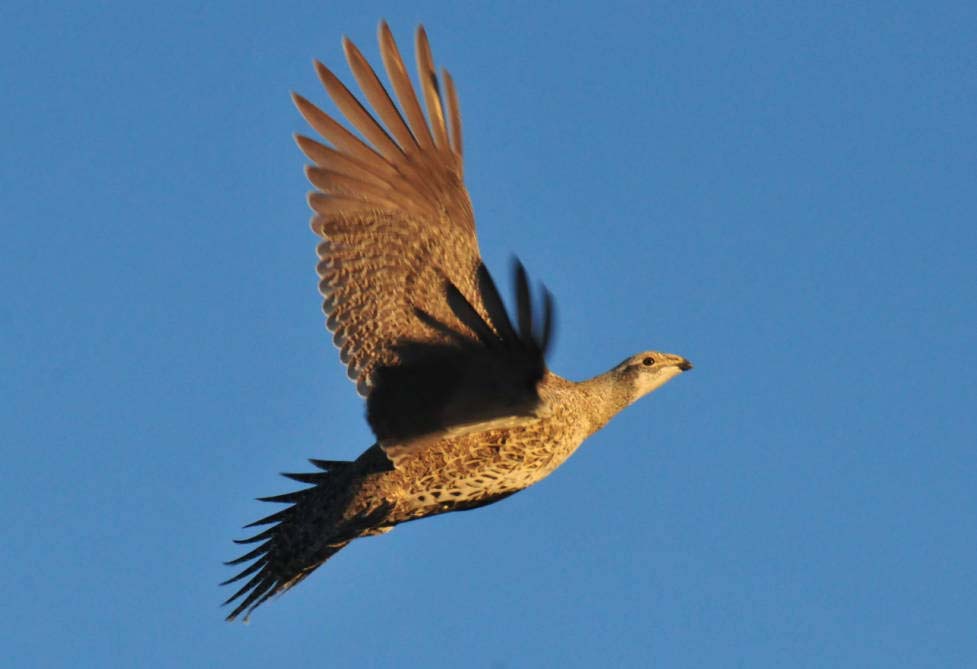 The greater sage grouse makes its home on open plains and sagebrush plains. |