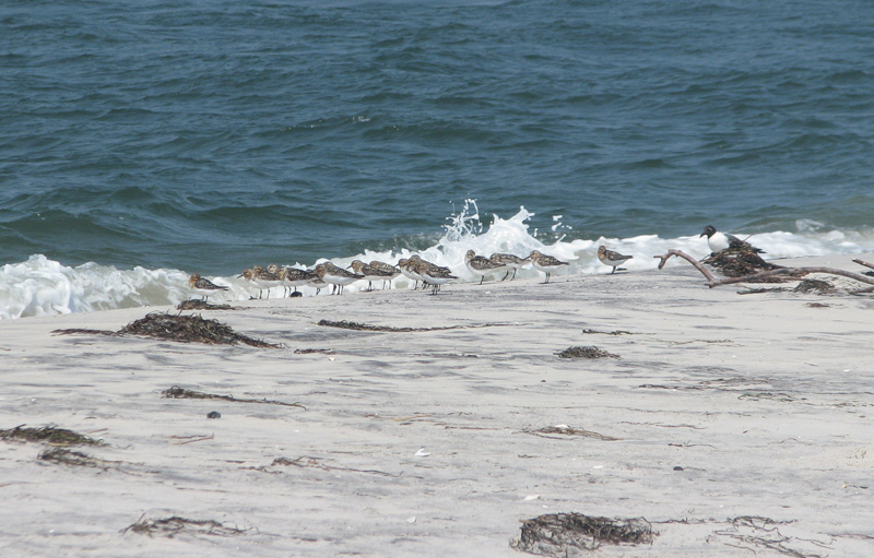 Semipalmated sandpipers and red knots use their sharp bills to poke in the sand for worms and other invertebrates. Ring-billed gulls scour the beach searching for crabs and small fish.