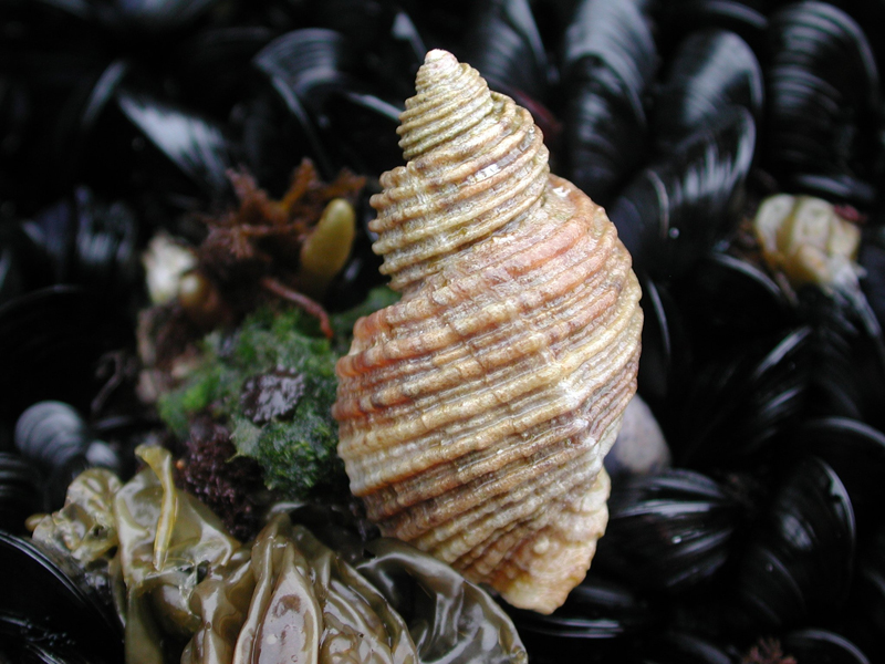 Wash and Dry The next area is the high-tide zone or the upper midlittoral zone. It is exposed to some water during high tide when waves wash over it. Organisms that live in this zone must be able to survive in both wet and dry environments. They also must be able to survive pounding waves! Barnacles, limpets, whelks, and mussels that live in this zone attach themselves to rocks so they aren't washed away by the waves. Tidepools often form in this region when water is trapped in depressions in rocks and the sand. Some animals live in tidepools for their whole life, others wash in and out with the tides. Organisms that live in tidepools have to adjust to changes in water temperature and salt and oxygen levels during the course of a day.