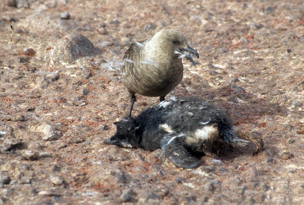 The south polar skua sometimes chases and harasses other birds to force them to drop their catches. The south polar skua is featureed in the animated movie Happy Feet. Four south polar skuas harass the penguin Mumbles.