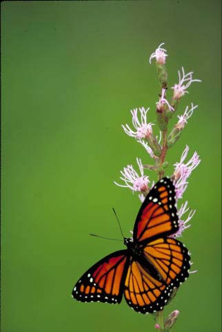 The viceroy butterfly lives in meadows, marshes, swamps, and other wet areas with willow, aspen, and poplar trees. |