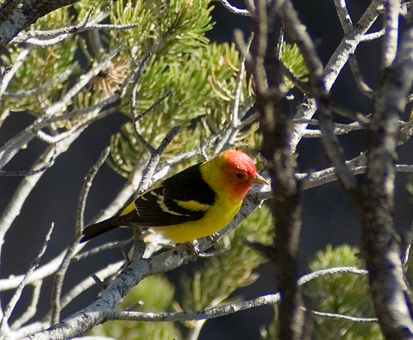 The western tanager is a long-distance migrator. Every year it travels between its wintering grounds in Mexico and Central America to its breeding grounds in western North America.